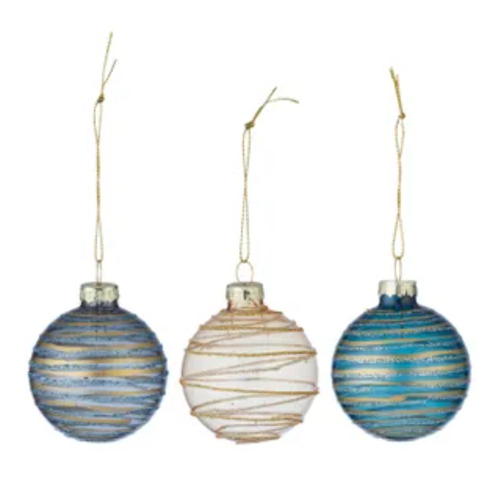 Bauble , Emerald Green with Gold Beading, 3 Asst