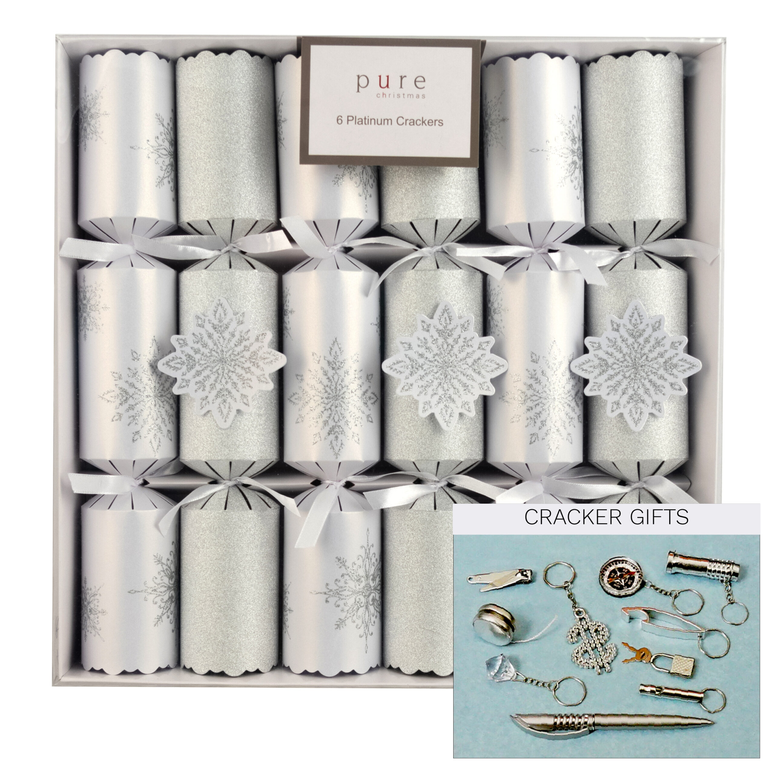 Bon-Bons – 6 White/Silver with Snowflake – Platinum Crackers