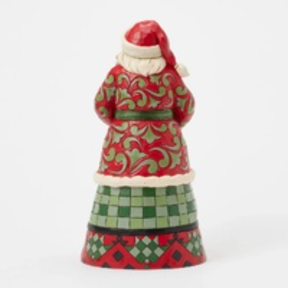 This charming Jim Shore design features Santa holding a Red Truck, dressed in a cozy buffalo plaid cloak that embodies holiday warmth. He captures the spirit of Christmas.