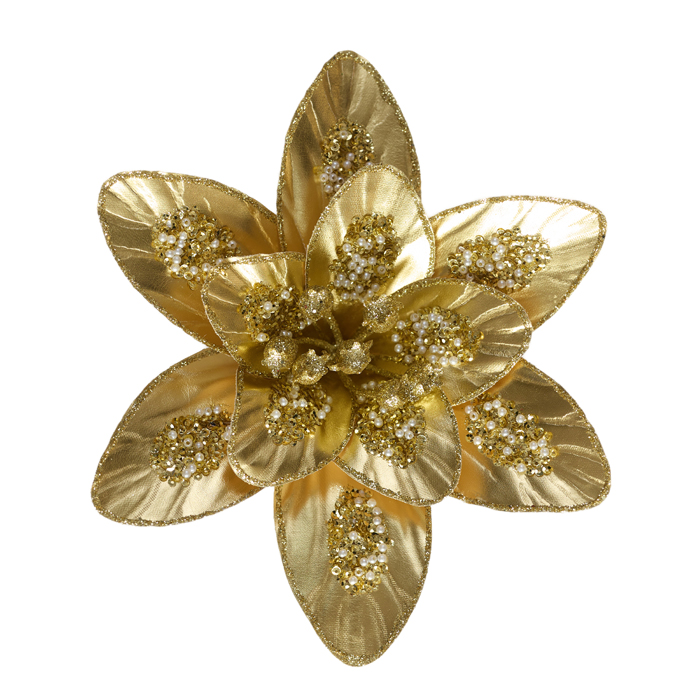 Poinsettia Clip On Gold Glitter Petal